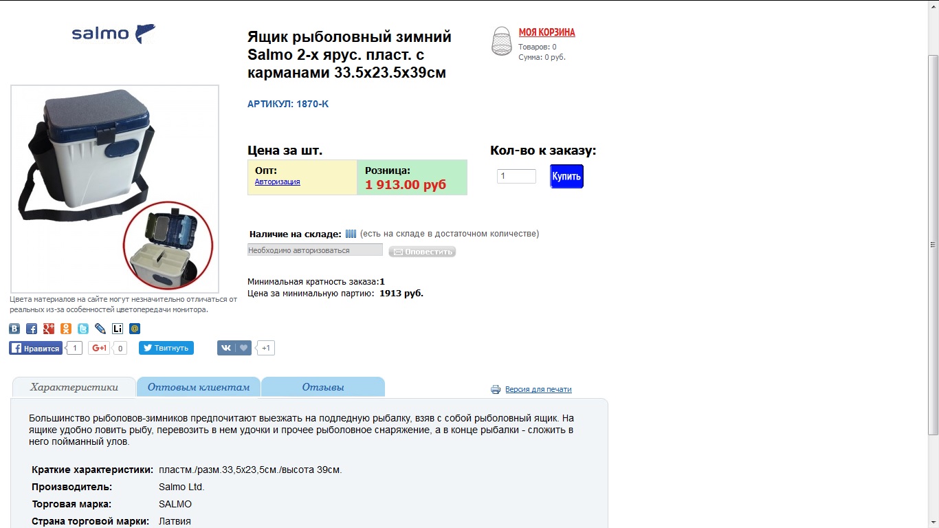 Ящик рыболов. зим. Sal*mo 2-х ярус. пласт. с карманами 33.5х23.5х39см
