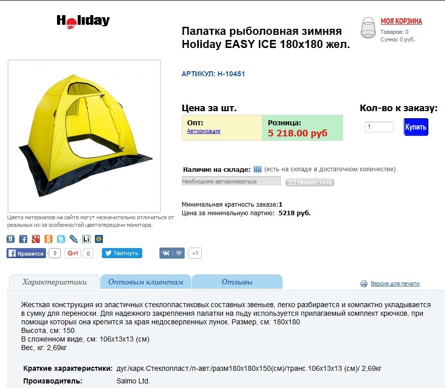 Палатка рыболов. зим. Ho*liday EA*SY ICE 180х180 жел.