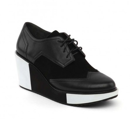 Доброе утро! Это вариация на тему классических дерби. Дерби - это обувь, пришедшая к нам из мужского гардероба, поэтому, очевидно, что гармонично будут смотреться с деловой одеждой: классическими брючными костюмами, юбками и т.д. Конечно, будут уместны в комплектах с джинсовой группой вещей. И иногда на контрасте могут гармонично вписаться в более женственные образы. Но тут уже, конечно, смотреть нужно. Хочу отметить, что черная обувь не такая универсальная, как нам кажется. Наиболее гармонично они будут смотреться в комплектах, где продублирован черный цвет хотя бы в деталях, либо там, где цвета насыщенные и глубокие. Еще советую комплектовать образы с этой парой черными, либо темными колготками (антрацит, мокко), чтобы не создавать контрастных переходов между ногой и обувью, что может зрительно укоротить Ваши ноги. И еще замечу, что хотя танкетка - это очень удобный вариант каблука, но часто не делает комплимента женской ноге и создает ощущение "копытца". Поэтому надо внимательно отнестись к выбору такой обуви. Но нужно сказать, что конкретно в этой модели, танкетка выглядит достаточно деликатно.