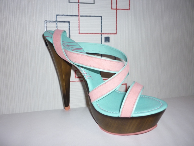 По стельке 40 - 26 см. Высота каблука 14,5 см, в том числе платформа в носочной части 4 см. Небольшой брак на платформе (пятнышко содранной краски) на наружной стороне босоножки.