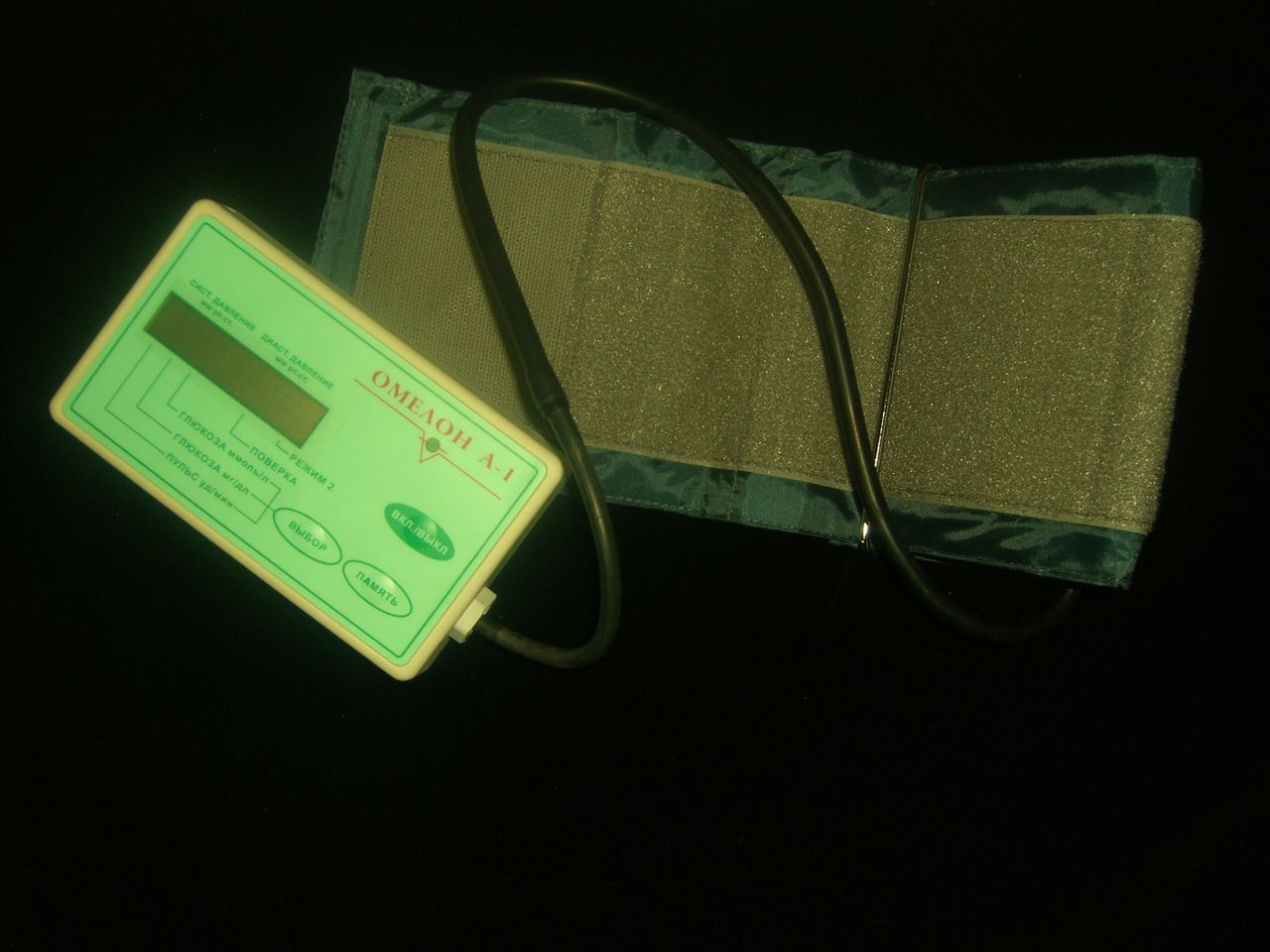 При помощи компрессионной манжеты, закрепляемой на плече, импульсы крови, проходящей по артерии руки, создают импульсные изменения давления воздуха в манжете. Эти импульсы преобразуются датчиком давления в электрические сигналы. В качестве информативных признаков для измерения верхнего/нижнего артериального давления и уровня глюкозы в крови используются параметры пульсовой волны.