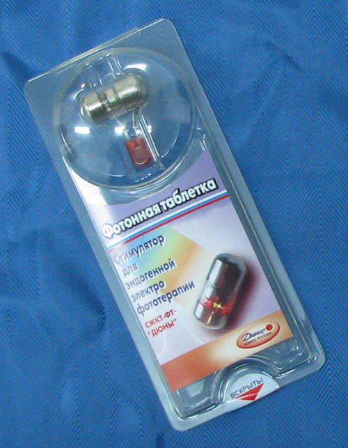 "Фотонная таблетка" - СЖКТ-4-"Дюны" представляет собой дальнейшую разработку "серебряной" ("кремлевской") таблетки. За счет расширения диапазона лечебных импульсов ( к электрическим импульсам были добавлены световые импульсы, аналогичные импульсам аппарата "Дюна-Т") расширился и диапазон недугов, на которые воздействует препарат: кроме заболеваний желудочно-кишечного тракта аппарат воздействует на иммунную систему, позволяя лечить заболевания аллергического характера, улучшает состояние больных сахарным диабетом и пр.